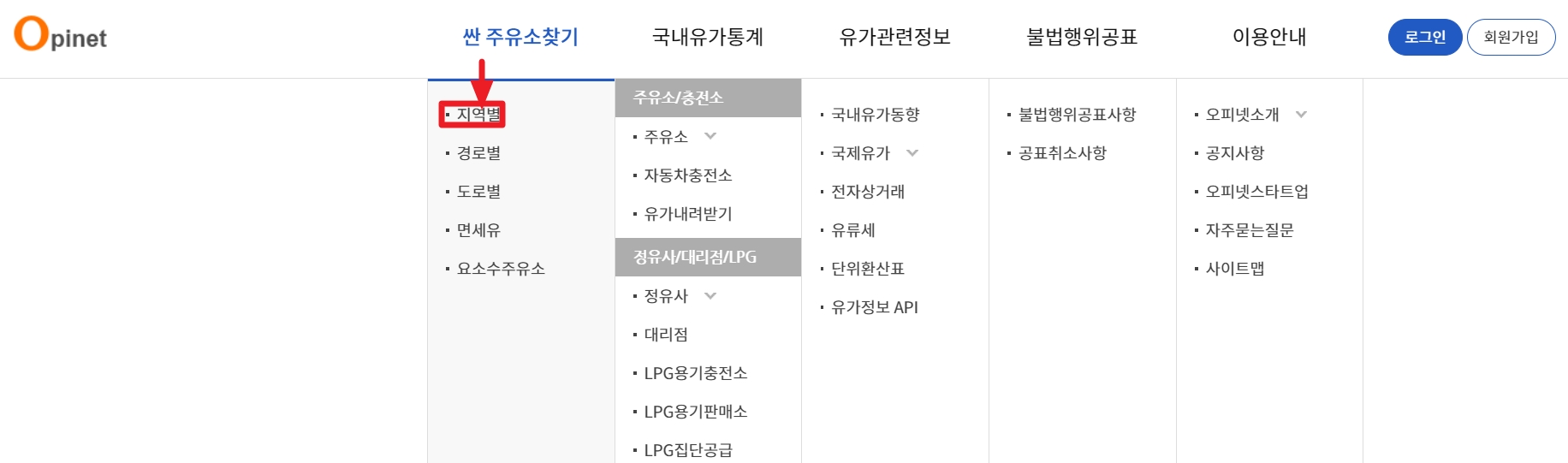 먼저, 오피넷에 들어가면 아래와 같은 화면이 나옵니다.